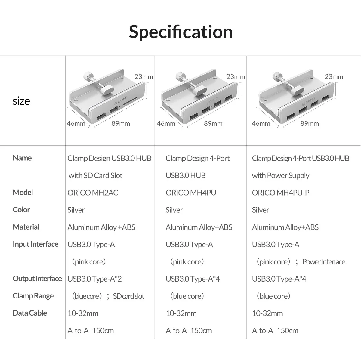 The ORICO MH4PU features a reader function and USB 3.0 interface type, making it user-friendly and easy to operate.